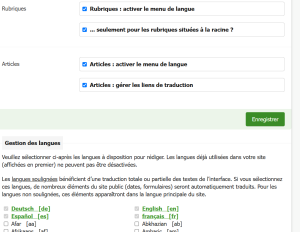 Dans l’espace privé, menu Configuration - Multilinguisme, le langues utilisées sont-elles bien cochées ?