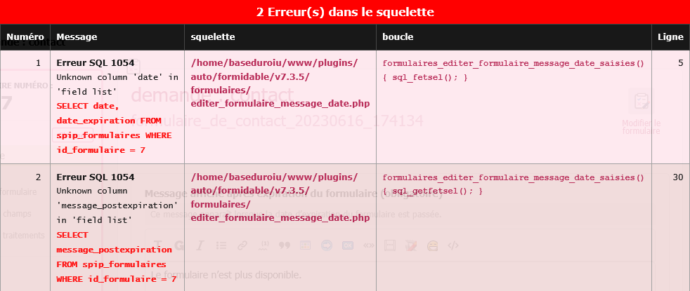 j’ai corrigé en important la structure de la table spip_formulaires directement dans la base à partir d’un site pour qui la mise à jour du plugin avait fonctionné.
