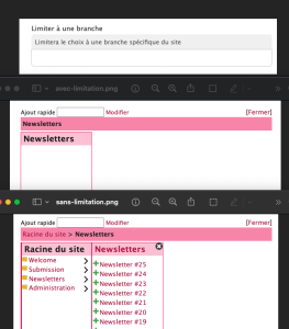 Je rencontre un problème avec le sélecteur d’articles. Dans la configuration il y a la possibilité de restreindre le choix à une branche (j’imagine qu’il s’agit de secteur ?).